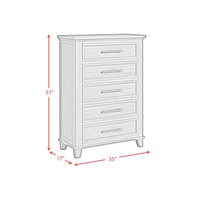 The Canterbury chest offers a timeless design with a rich grey finish. Featuring five spacious drawers, it provides ample storage for clothing and accessories. The chest’s elegant molding details and sturdy construction make it a stylish and functional bedroom addition